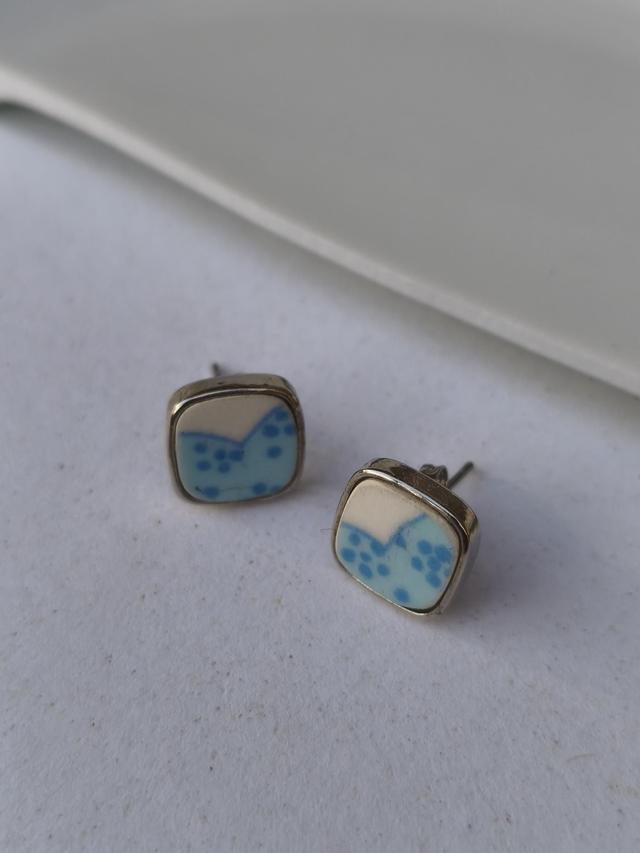 Boucles d'oreilles simples carrées - faïence italienne et laiton - no.4