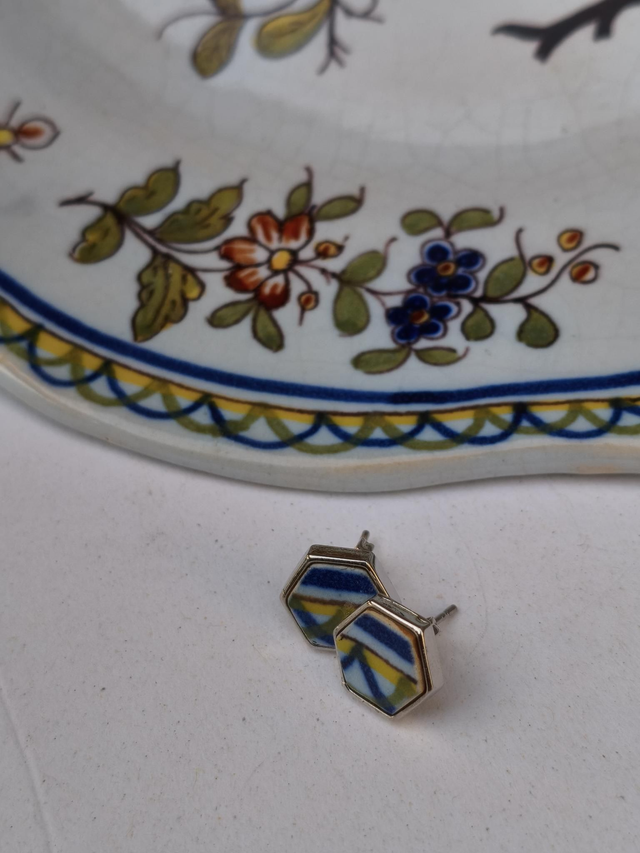Boucles d'oreilles simples hexagonales - faïence et laiton - Faïencerie de Desvres - no.1
